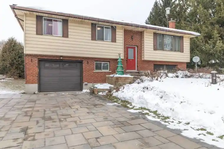 Beautiful Raised Bungalow on a Half-Acre Treed Lot This beautifully updated raised bungalow is nestled in a quiet small town just minutes from Fergus and Guelph, offering the perfect blend of country charm and city convenience. Featuring 3+1 bedrooms, 2 baths, and an inviting open-concept design, this home is brightened by a skylight and accented with hardwood floors. The finished basement includes a walkout and a cozy rec room warmed by a wood stove-an ideal space for family gatherings or peaceful evenings in. Step out from the primary bedroom balcony and take in views of the spacious half-acre treed lot, complete with a patio and gazebo for outdoor enjoyment .A steel roof provides durability and peace of mind, while the interlocking driveway adds curb appeal and plenty of parking. The property also includes two oversized storage sheds and an oversized garage equipped with a generator backup panel. If you’re looking for a small-town country home not far from the city, this one offers everything you’ve been waiting for.