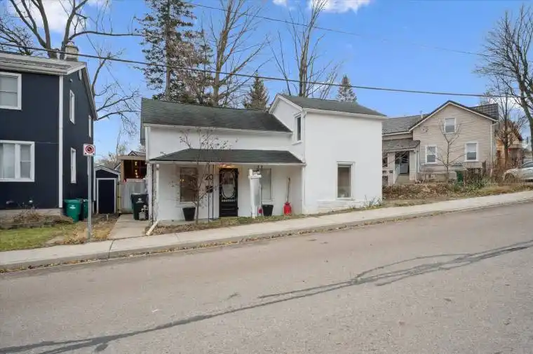 Looking for the perfect starter home in downtown Hespeler? This beautiful century home w/loft is priced competitively to many condos, but comes with the perks of a single-family home including a private backyard and dry basement storage. The kitchen is re-modeled with newer cabinetry, counters, sink, and flooring. The living room has vintage pine flooring with a modern black accent wall and built-in fireplace w/mantle. Upstairs you’ll find more pine flooring in the cozy bedroom and den (which can easily be transformed into another bedroom). The bathroom has been updated with a walk-in tiled shower and heated flooring! Downstairs provides an adequate laundry area (washer/dryer) and ample storage. Step into the private fully-fenced backyard with poured concrete sitting area, covered roof, and turf grass for minimal maintenance. Just a stroll away from downtown picturesque Hespeler with easy access to the 401, central to Cambridge, Guelph and Kitchener. All electrical updated, gas furnace and newer A/C, Ecobee, water softener (2024), water heater (rented – 2024), kitchen flooring (2025).