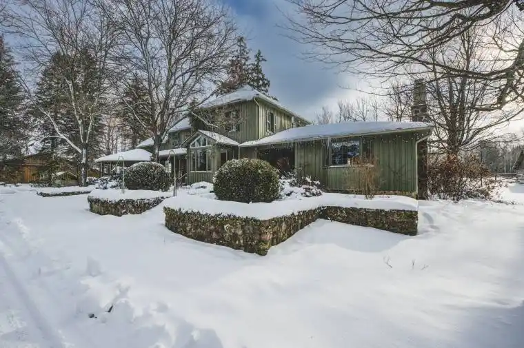 THIS BEAUTIFUL COUNTRY RETREAT AWAITS YOU AND YOUR FAMILY! Unique, enchanting and enriched with the natural beauty of the rolling landscape and an abundance of history, this country estate reveals itself in a series of wonderful surprises. The property is not only a picturesque 150 Acres with a 4867 square foot, two-storey beautifully proportioned home, it also features two mid-nineteenth-century log cabins, an in-ground pool with a private pool house, with sauna, pond, apple and pear orchard, barn with horse stalls and hay loft, large drive shed with extensive workshop and one of Ontario’s few existing stone silos converted into an artist’s studio with a deck overlooking raised gardens and a stunning view of the farm. You and your family will live on your own retreat. Join us for a walk down the majestic tree-lined laneway and open your eyes to the wonder that befalls you. The house has 4+1 bedrooms including a full guest suite with bed and sitting room with direct access to the garden and a 3pc bathroom. In the finished basement you will relax in the movie theatre and games room. The generous office space is full of light. The property encompasses aces of mature bush and managed reforestation, wetlands, walking trails, 40 acres of arable land and a seven-acre revenue producing solar panel installation. This historical family estate has been lovingly cared for by three families since 1896 when the settlers built a new house on the present site. Over the decades the house has been expanded and modernized, combining heritage with sustainability.