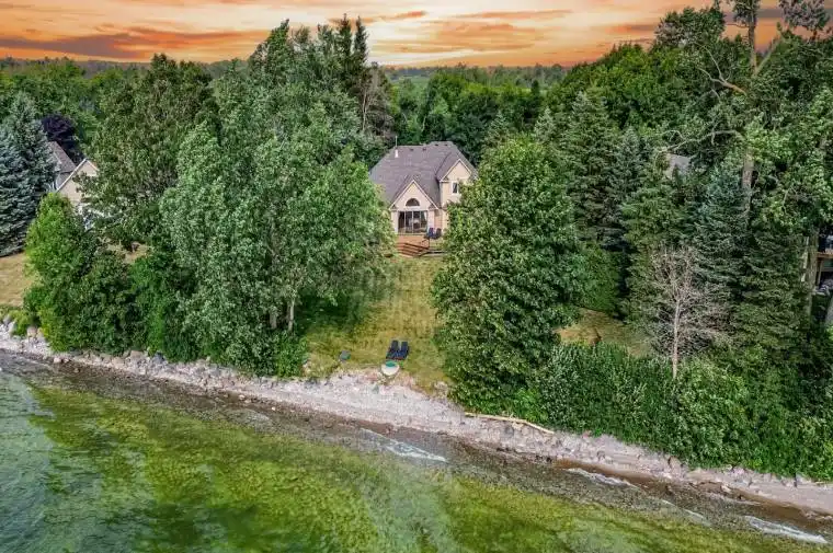 LAKE SIMCOE WATERFRONT RETREAT FOR LEASE ON A PRIVATE 0.84 ACRE LOT WITH WESTERN EXPOSURE! Set along the shores of Lake Simcoe with western exposure, this private waterfront home for lease offers peaceful lake living on a quiet no-exit road, approximately 10 minutes from Brechin and Beaverton for daily essentials, with Orillia nearby for additional shopping, dining, and major amenities. The 0.84-acre property features 135 ft of shoreline, sweeping lake views, and a glass panel deck ideal for outdoor living and entertaining, all surrounded by mature trees that provide natural privacy. An oversized driveway and two-car garage offer ample parking for vehicles, watercraft, and recreational toys, with a separate garage entry to the lower level adding flexibility for extended family or guests. Curb appeal is highlighted by peaked rooflines, attractive landscaping, and a covered entry framed by stately columns, while the open concept main level showcases hardwood flooring and a dramatic great room with vaulted ceilings, floor-to-ceiling windows, and a wood-burning fireplace. The kitchen includes custom cabinetry, stainless steel appliances, and a breakfast bar, complemented by an adjacent formal dining area for hosting. The main level primary bedroom features lake views, deck access, a fireplace, a walk-in closet, and a spa-like 4-piece ensuite with a deep soaker tub, while two upper-level bedrooms share a full bath. The finished lower level adds valuable living space with a large rec room, two additional bedrooms, another full bathroom, cold storage, and pot lighting throughout. Complete with a Generac backup generator, this spectacular #HomeToStay offers the ultimate waterfront lifestyle!