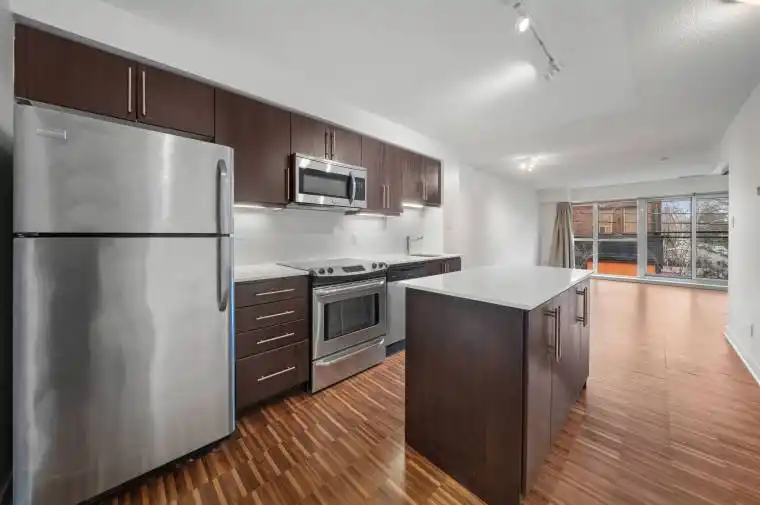 1169 Queen Street West #209 offers a smart and comfortable one-bedroom unit in a rent-controlled building that quietly balances character with ongoing improvements. This is a home designed for someone who wants space that feels intentional and a building that benefits from rent control. Inside, the first thing you notice is the layout. This is a genuinely large one-bedroom apartment, not a shrunken version of a bigger idea. The living area connects seamlessly to a Juliette balcony that brings in fresh air and natural light without sacrificing interior square footage. Being located on the second floor adds a layer of everyday convenience that’s easy to appreciate. Whether you prefer taking the stairs, want a quicker exit in busy moments, or simply don’t feel like waiting for elevators, this floor level makes coming and going simpler. The building itself is undergoing thoughtful updates to its condo amenities and hallways, with several improvements recently completed and others currently in progress. Tenants get the advantage of a rent-controlled building while benefiting from refreshed shared spaces. A locker is included, offering valuable extra storage space for seasonal items, sports gear, or anything you’d rather keep out of sight. Positioned on the edge of some of the city’s most vibrant pockets, you’re close enough to enjoy destinations like the Drake Hotel, Bar Poet, Ossington-Dundas, and Badiali, without feeling like you’re living in the middle of the noise. Transit connectivity is excellent, with both the 301 and 501 TTC streetcar stops just steps away. Daily errands, local shops, cafés, and restaurants are all within easy walking distance. 1169 Queen Street West #209 is a well-balanced offering for anyone looking to lease a one-bedroom condo that prioritizes layout, location, and livability.