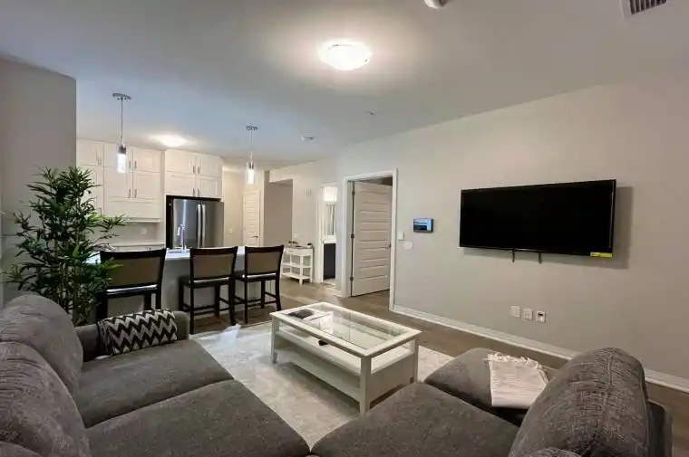 Fully furnished (with internet included) and available February 1, this beautifully designed 1 bedroom + den, 1 bathroom ground-floor condo offers comfort, style, and everyday convenience. Located in the newer Walker community of Milton, this inviting suite comes furnished exactly as shown, making it truly move-in ready. The open-concept layout is filled with natural light and features 9-foot ceilings, wide plank flooring, and a spacious living area highlighted by a tasteful accent wall. The modern kitchen is both stylish and functional, complete with stainless steel appliances, quartz countertops and backsplash, extended cabinetry, and a breakfast bar-perfect for casual dining or entertaining.The bedroom is generously sized, while the versatile den offers an ideal space for a home office or reading nook. Enjoy the added convenience of ground-floor access, along with one underground parking space and one locker included. A thoughtfully upgraded, fully furnished home in a great location-just unpack and enjoy.