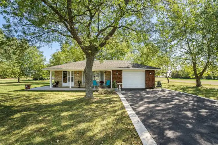 Set on 10 private acres in Rural Glanbrook, this well-kept 3-bedroom country bungalow/split offers the peace of open fields with city conveniences minutes away. A long paved driveway leads to an attached garage and a welcoming front porch. Inside, bright living/dining spaces flow to a functional kitchen; original oak hardwood (under broadloom) adds character. Three comfortable bedrooms share an updated 4-pc bath with quartz vanity. The lower-level family room with gas fireplace is perfect for movie nights, with laundry and generous storage in the balance. Enjoy evenings on the concrete patio overlooking wide-open greenspace. Private well & septic, vinyl thermal windows, high-efficiency gas furnace, tankless water heater and a generator transfer switch provide year-round comfort. A rare opportunity-room for gardens, hobby pursuits, or a future shop-just north of Binbrook and close to Hwy 56.