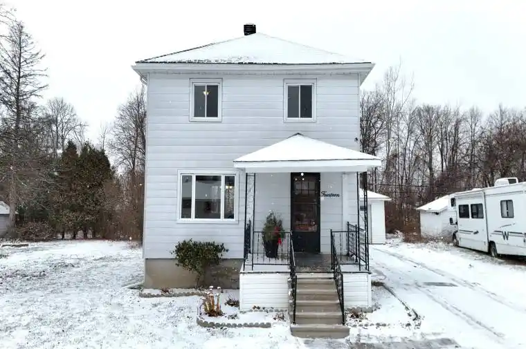 Quaint and full of charm, this lovely home in the Village of Long Sault, once a classic Seaway home, has been thoughtfully updated while preserving its original character. The interior features extensive renovations, including an updated kitchen with refreshed cabinetry, stylish backsplash, updated countertops, and new flooring, flowing into a warm and inviting dining and living room-perfect for everyday living. A beautiful wooden staircase leads to three upper-level bedrooms and a freshly updated four-piece bathroom. Enjoy quiet moments on the front veranda, ideal for relaxing and a morning coffee. The clean, fresh basement offers excellent storage space, while the exterior boasts a generous lot and detached garage, completing this charming and well-maintained property. 48 Hours on all offers