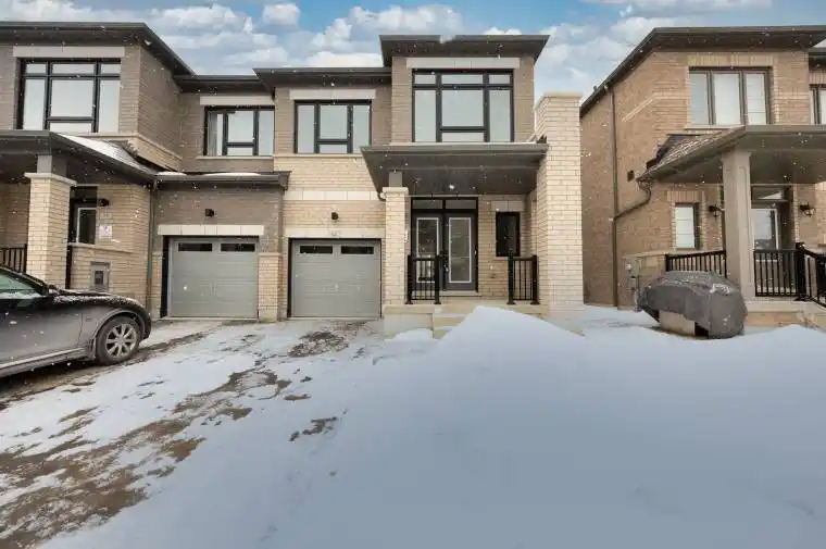 Welcome to this end-unit 4-bedroom, 3-bathroom townhome with a separate entrance, offering over 1,800 sq. ft. of modern living space. Featuring 9-ft ceilings on the main and second floors, this bright home offers unobstructed front and rear views with plenty of natural light. The open-concept main floor showcases hardwood flooring throughout and a cozy electric fireplace, while the upgraded kitchen includes stainless steel appliances. Upstairs offers four spacious bedrooms, including a primary suite with a luxury ensuite and freestanding tub, plus convenient second-floor laundry with washer and dryer. Additional highlights include two parking spaces (garage and driveway with interior access), quick access to Hwy 412, 401 & 407, just 11 minutes to Ajax and Whitby GO Stations, minutes to Costco, Walmart, shops and restaurants.