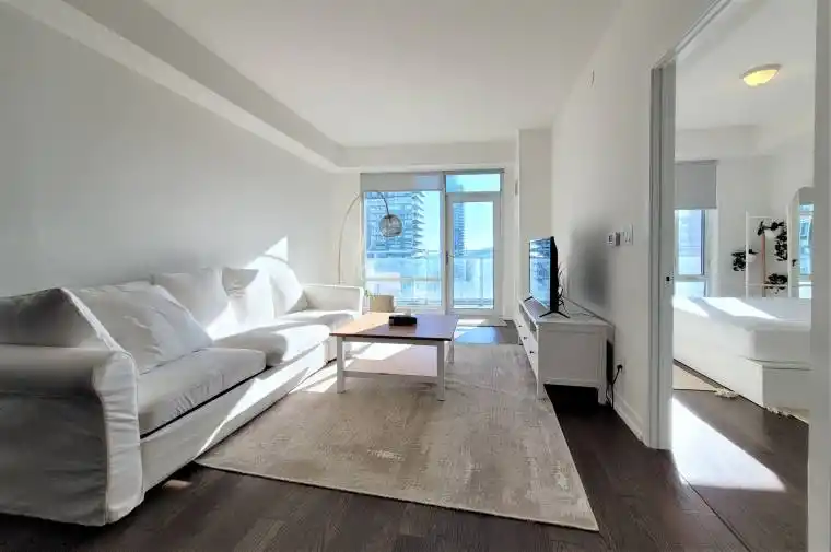 Prime downtown living at Cinema Tower Residences! This stunning south-facing suite offers 617 sq. ft. of interior space plus a 105 sq. ft. balcony, featuring hardwood floors, 9-foot ceilings, and breathtaking views of the lake, CN Tower, and city skyline. Enjoy world-class, resort-style amenities including a full-size basketball court, 35-seat screening room, games room, state-of-the-art gym, sauna, hot tub, BBQ terrace, and guest suites. Fully furnished and move-in ready-perfect for professionals