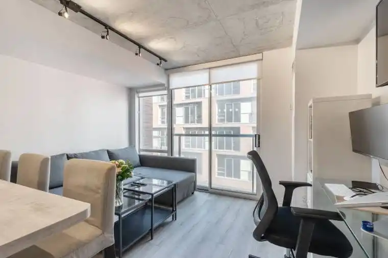 Welcome to a stylish studio residence at Parliament Square, in Toronto’s iconic Distillery District. This bright and functional suite offers an open concept layout with high ceilings, expansive windows, and an airy feel that maximizes both space and natural light. Enjoy the convenience of an ensuite laundry and a generously sized bathroom finished with contemporary fixtures. Parliament Square is a thoughtfully designed, architecturally distinctive building with a striking brick façade that reflects the historic charm of the Distillery District while offering modern comfort and accessibility. Set along charming Gristmill Lane, the building is surrounded by boutique retail, cafés, and a welcoming private lobby and lounge. Step outside and immerse yourself in one of Toronto’s most walkable and vibrant neighbourhoods. Enjoy local favourites such as SOMA Chocolatemaker, Arvo Coffee, Cluny Bistro, and year-round markets and cultural events. Nearby green spaces include Corktown Common, Underpass Park, and the Martin Goodman Trail, offering easy access to waterfront paths and outdoor recreation. TTC streetcar access is just steps away, making commuting downtown quick and convenient. This is a rare opportunity to live in a well-established building within one of the city’s most sought-after neighbourhoods, offering the perfect balance of character, convenience, and urban lifestyle.