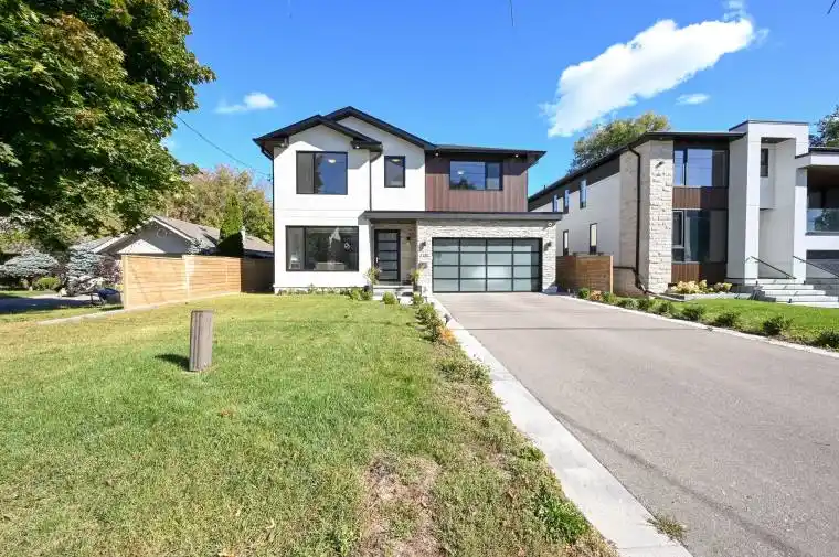 Welcome to this Stunning Custom-Built modern home in Mississauga’s highly sought after Lakeview community. Designed with elegance and functionality in mind, this residence offers over 3500 sq feet of Finished Living space with soaring ceilings, floor to ceiling windows and high end finished throw-out. If you dream of living near the water but are not ready to give up all the conveniences of the city, look no further. Beaming w/Natural light throw-out with massive Full Panel windows everywhere and huge skylight above the marvelous glass railing. Boasting high ceilings Top to Bottom. The main level features an open concept layout with a chef inspired kitchen boasting quartz countertops, premium stainless-steel appliances and a spacious island seamlessly flowing into the great room with a statement fireplace and walk out to a private backyard deck. Upstairs the primary suite is a true retreat with a luxurious spa like ensuite and his and her walk-in closets. Three additional bedrooms, each with their own ensuite, provide comfort and privacy for the whole family. The huge finished lower level includes two additional bedrooms, two full baths, above grade windows and two separate entrances, perfect for an in-law suite, guest quarters or entertainment space. Set on a 50 by 110 lot with a double garage and parking for up to six cars, this property combines modern design with everyday practicality. Located in vibrant Lakeview, you are just minutes from Lake Ontario, Waterfront trails, top rated schools, parks, shopping, transit and major highways.