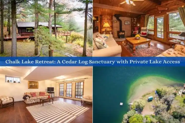 Escape the hustle & discover your perfect getaway at 65 Sumac Lane, a truly unique 2+1 bedroom, 2 full-bathroom residence nestled on nearly 1 acre of peaceful seclusion, yet just 40 minutes from midtown Toronto. This charming 1976 Pan Abode cedar log bungalow offers 1,558 sqft of distinctive finished living space, blending rustic charm with modern convenience. The main floor welcomes you with a bright, open-concept layout featuring stunning vaulted ceilings throughout the living room, dining room, & updated kitchen. The living area is centred around a cozy, standalone propane fireplace & boasts hardwood floors & 2 convenient walkouts leading to a south-facing deck. The updated kitchen features an attractive picture window & the 2 main-floor bedrooms offer dedicated closets & vaulted ceilings. An updated 4-piece bathroom with a soaker tub & vaulted ceiling complete the main level.A beautiful wooden staircase descends to the walk-out basement, where the spacious rec room (which could serve as a primary bedroom) awaits, featuring laminate flooring, 8-ft ceilings, & triple doors opening to a stone patio. This lower level includes a large, updated 3-pc bathroom & a laundry room, along with a functional workshop storage area.One of the most valuable features is deeded access to a stunning, private, sandy beach on Chalk Lake, a 350m walk away. This exclusive, clear-water kettle lake is perfect for swimming, kayaking, & paddleboarding. You’ll enjoy the best of both worlds with a private lakeside lifestyle & the convenience of being 5 minutes from HWY 407. With a quick 3-5 min drive to 2 ski resorts, endless trails for hiking & biking in Uxbridge, the Trail Capital of Canada. Close to top-tier golf courses, equestrian attractions & great restaurants like Slabtown Cider & Nest, this isn’t just a home; it’s a new way of life. Don’t miss this rare opportunity to own a captivating cedar log residence & embrace a new way of life in the woods with exclusive private lake access.