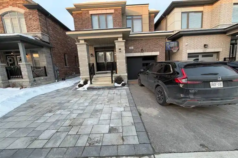 Welcome to this stunning, fully upgraded detached 4-bedroom, 3-washroom home in the highly sought-after Whitby Meadows community, built by Paradise Homes. Offering 1,725 sq. ft. of thoughtfully designed living space, this freshly painted home perfectly blends modern style with everyday functionality.Step inside through the elegant double-door entry and be impressed by 9-foot ceilings, rich hardwood flooring in the great room, dining area, hallways, and a beautifully finished staircase. The spacious primary bedroom is a true retreat, highlighted by a 10-foot coffered ceiling that adds a touch of luxury and sophistication.Enjoy cozy evenings by the gas fireplace and entertain with ease thanks to a built-in gas line in the backyard, ideal for summer BBQs. A convenient side-door entrance, provided by the builder, adds extra flexibility and accessibility.Additional features include parking for a third vehicle and new interlocking at the front entrance, enhancing both curb appeal and convenience.Ideally located close to top-rated schools, parks, shopping centres, and restaurants, this exceptional home offers the perfect balance of comfort, style, and everyday convenience.