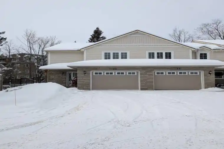 This is your opportunity to purchase a condominium townhome within walking distance of downtown Huntsville. This premium end unit is nestled in a 12-unit complex (3 buildings of 4 units each). This cul-de-sac is tucked off Dairy Lane. This home features 3 generous bedrooms, an ensuite for the primary bedroom with a walk-in closet, another 4-piece bathroom, plus a 2-piece powder room on the main level. The main floor features hardwood flooring in the open concept living/dining room, oak kitchen cabinets with pass-through, a natural gas fireplace for added ambiance, carpet staircases, and a glass sliding door to a spacious private deck. A large front foyer, welcomes guests, or provides convenient direct access to the garage. The lower level is unfinished with a laundry utility area and a large storage room and a workroom. This lovely unit is air-conditioned, landscaped and offers a carefree & maintenance-free lifestyle. Priced for you to add your style and décor. Quick closing available so you can start living conveniently now. The grass is cut for you and no snow to shovel! Perfect for retirement living or those with a busy lifestyle.