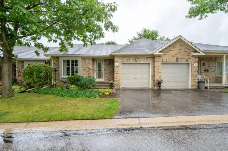 Outstanding Value in London! This beautifully updated 2-bedroom bungalow townhouse with a walkout basement offers modern comfort and move-in readiness in a quiet, well-managed community-steps from East Park Golf Gardens & Water Park and minutes to easy 401 access. The main floor features vaulted ceilings, hardwood floors, and a floor-to-ceiling brick gas fireplace. The bright kitchen and dining area include new patio doors (2025) leading to a private deck, perfect for relaxing or entertaining. The dining room easily converts to a home office or optional third bedroom. The walkout lower level offers a spacious bedroom, a 3-piece bath with heated floors, and a cozy family room with patio access. An attached garage with inside entry adds everyday convenience. Updates include fresh paint, patio doors (2025), R60 insulation (2023), eavestroughs (2023), and furnace & A/C (2019). Close to transit, shopping, schools, and East Park amenities-ideal for professionals or downsizers seeking low-maintenance living with exceptional value.