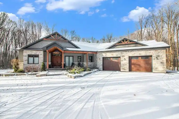 *OPEN HOUSE SATURDAY FEB 7TH 2-4PM* Prepare to discover the pinnacle of luxury country living in this breathtaking custom designer-built estate, perfectly poised on a premium, private treed lot just shy of four acres. Imagine waking up to mornings flooded with light, where the cathedral ceilings soar above elegant wood beam accents, setting the stage for unforgettable gatherings around the colossal 11-foot quartz island that anchors the open-concept gourmet kitchen, complete with a massive walk-in pantry and walls of fenestration framing serene outdoor views. The main floor offers a private sanctuary in the primary suite, boasting a walk-through closet, a highly upgraded ensuite with custom solid wood vanities and a large soaker tub, and direct access to a cozy, fireplace-warmed sunroom-your perfect year-round retreat. From the double attached garage, a large mudroom and main-floor laundry ensure family life stays organized, while two spacious children’s bedrooms are connected by a high-end Jack and Jill washroom and a charming, flexible nook area, ideal as a reading retreat or homework station. The lower level is an entertainer’s dream playground, featuring a sprawling bar area, a dedicated movie room for cinematic nights, and a generous kids’ playroom beside it. Also on the lower level, a fourth bedroom, a fully equipped gym, and convenient walk-up garage access-perfectly accommodating multi-generational living. This dream is complete with an absolutely massive detached shop (32ft x 48ft) , featuring two large bays, a third side bay, and a loft, providing an incredible space for storing every toy and piece of equipment, cementing this home as the ultimate rural escape, truly overflowing with too many high-end, custom finishes to count. Don’t miss out, book your private visit today!