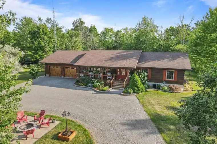 Welcome to 15 Keefer Drive, Welland, Ontario. Tucked away on just under 5 private acres, this stunning log homebuilt in 1989 offers a peaceful escape surrounded by nature. From the moment you step inside, you’re greeted by warm wood accents and a rustic charm that flows throughout the main level. Featuring 3 spacious bedrooms and 2 full bathrooms, this floor includes sliding doors that open to a serene rear patio perfect for enjoying the sights and sounds of the forested surroundings. The finished lower level blends modern touches with natural character, offering 2 additional bedrooms, a full bathroom, and a beautifully updated kitchen complete with quartz countertops. A spacious attached two-car garage provides convenient access to both the main floor and the basement, while a detached two-car garage offers even more storage or workshop potential. The circular driveway adds ease of access and ample parking for guests. This rare property is the perfect blend of rustic living and modern convenience all within easy reach of city amenities. (Please note that the interior wood is NOT paneling but tongue and groove)