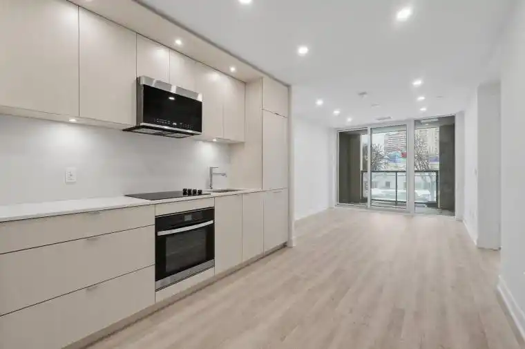 Welcome to Westerly 1 by Tridel at 25 Cordova Avenue, where contemporary design meets everyday convenience in the heart of Islington-City Centre West. This thoughtfully designed 1-bedroom plus den suite spans 616 sq. ft. and features a practical open-concept layout with clean finishes and comfortable proportions well suited to modern living. The modern kitchen is appointed with integrated stainless-steel appliances, quartz countertops, and streamlined cabinetry, opening seamlessly into the combined living and dining area. Wide-plank flooring and large windows enhance natural light throughout the space, while a walk-out from the living area leads to a private balcony that extends the living space outdoors. The bedroom offers a well-proportioned layout with generous closet storage and a large window, complemented by a versatile den that functions well as a home office or additional living space. A modern 4-piece bathroom is finished with contemporary tilework and a sleek vanity, while in-suite laundry is neatly tucked into a dedicated closet to maintain a streamlined layout. Residents enjoy access to amenities including a fitness centre, party and meeting rooms, guest suites, and concierge service. Ideally located steps from transit, parks, shops, and everyday conveniences, this suite delivers comfortable, well-connected urban living in an established Etobicoke community.