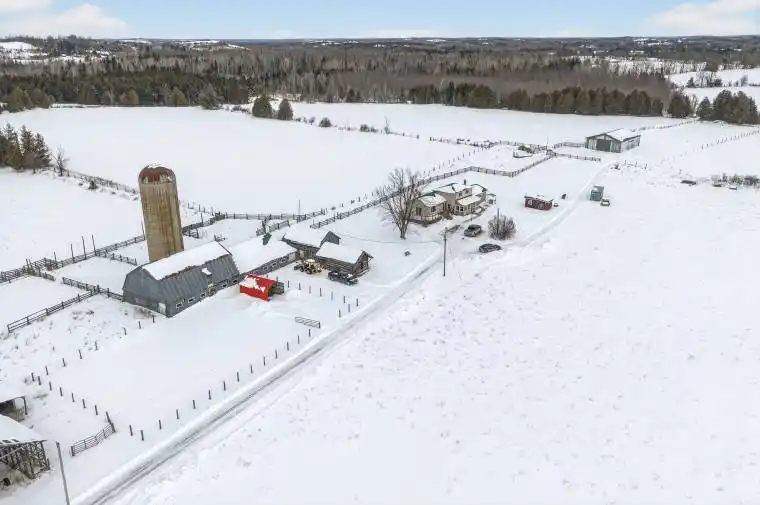 122 acre private farm offering total seclusion and exceptional versatility. Features a circa 1840 log home with extensive additions which include 4th bedroom, hardwood floors, updated 4 pc and 3 pc baths, a three season porch, main floor primary bedroom with ensuite, and three bedrooms on second level, updated septic system and well pump. Land includes 45 plus acres workable with 50 acres of pasture and 22 acres of woods, plus approx. 750′ of frontage on the Indian River. Extensive out buildings: large barn suitable for livestock or horses, 60′ x 40′ drive shed, 2 covered run ins, concrete silo, log shed, and wired shop for welding. Ideal for farming, equestrian use, homesteading, or a private rural retreat all on a bus route 15 mins from Peterborough.