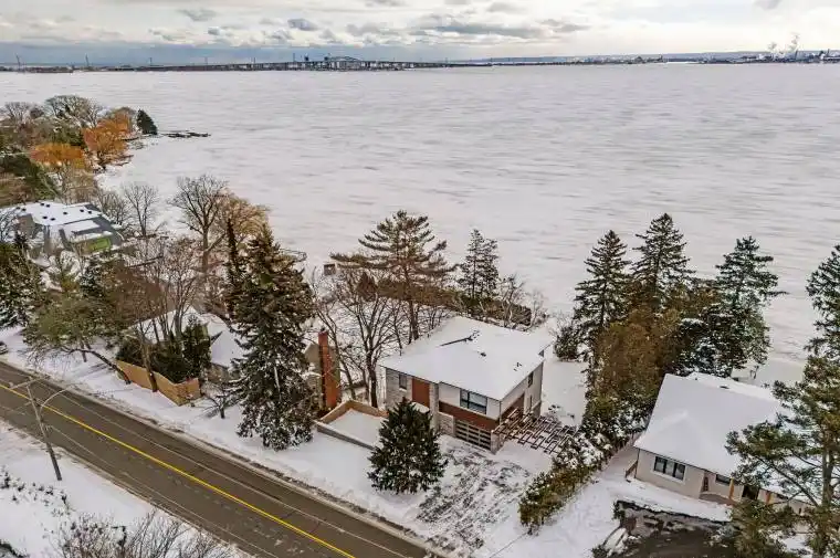 An exceptional waterfront residence, fully renovated with Addition from top to bottom in 2020,offering breathtaking views of Lake Ontario and over 70 ft of direct waterfront. This stunning home features 3+1 bedrooms, 4.5 bathrooms, and approximately 3,000 sq. ft. of beautifully finished living space, plus a detached guest house of approx. 400 sq. ft. The open-concept main level is designed to maximize natural light and panoramic lake views, ideal for entertaining. The second level offers three spacious bedrooms, each with its own private ensuite. The walk-out basement includes a generous family room, an additional bedroom with ensuite, and direct access to the lake-just steps to the shoreline. Nestled in a tranquil, tree-lined neighbourhood near the Burlington Golf & Country Club, and minutes to downtown Burlington, GO Train, shopping, schools, and waterfront trails. A rare opportunity to own a truly remarkable luxury waterfront home.