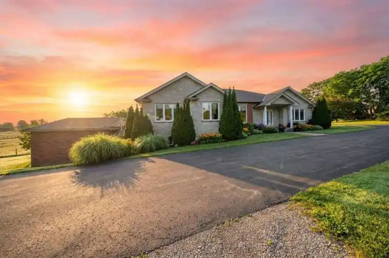 Welcome to your fully accessible dream home at 270 McGill Road, perfectly positioned just outside Brantford in a scenic setting between West Brant and Mount Pleasant. This stunning bungalow offers breathtaking views of rolling hills and tranquil countryside. Boasting 2,520 sq ft above grade and over 5,000 sq ft total living space, it features 4 bedrooms, 4 bathrooms, and a beautifully finished in-law suite-ideal for multi-generational living or guests. The main level includes a spacious dining area with hardwood floors, seating for 8-10, and patio door access; a gourmet kitchen with oak cabinetry, stainless appliances, breakfast bar; an open-concept living room with natural light, pot lights, and gas fireplace. The primary suite offers a walk-in closet and ensuite, plus another bedroom with ensuite. Two more bedrooms share a 4-pc bath, with main-floor laundry and backyard access. The fully finished lower level has a bright walk-out in-law suite with full kitchen, dining, large living room, and gas fireplace. Relax year-round in the cedar sunroom leading to an indoor pool room with therapy swim spa. Thoughtfully crafted for universal design and effortless accessibility-no steps or barriers: Private elevator for a wheelchair serving all levels Therapeutic swim spa/hot tub with lift for hydrotherapy Extra-wide doorways and hallways Spacious roll-in shower with grab bars Open-concept, handi-cap ready layout perfect for wheelchairs, walkers, or aging in place Outside, enjoy a stamped concrete patio and expansive yard for entertaining or unwinding. A rare blend of luxury, spa-like wellness, complete accessibility, and peaceful country living-minutes from city conveniences.