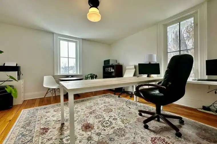 Immediate Occupancy Possible! – Newly renovated high exposure historic landmark building with professional tenant mix situated just east of York Durham Line in the quaint hamlet of Green River immediately on Highway 7 (formerly known as the Saunders Book Store). Conveniently located just east of Markham along the north west border of Rural Pickering. Ideally suited for office or similar use. See floor layout plan showing main and upper floors. W5 has 2 large windows and faces Highway 7. There are three common washrooms. Each unit comes with its own designated parking(s) Utilities (gas/ water/ hydro) are included. The interior of the building impresses with period correct materials throughout. Finishes include mosaic tilework, hardwood, high baseboards, crown mouldings, ornate trimwork, coffered/ tin ceilings, oversized vertical sliding slash styled windows that crank open, exposed wood, brickwork, and more. All office are sizeable, bright, and airy with ample separation from neighbouring suites. Office furniture can form part of the lease subject to availability.