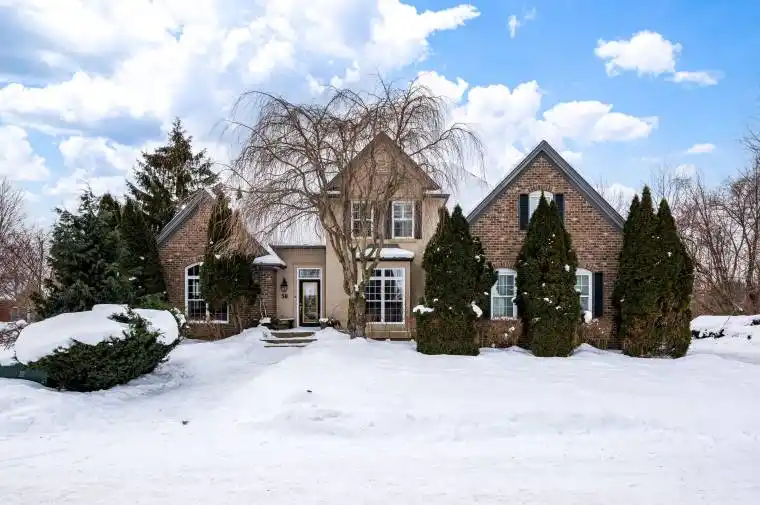 Tucked away on a quiet cul-de-sac, just a short stroll from the Historic Commons and downtown, this exceptional custom-built Lifestyle Homes residence offers refined living in a truly private setting. Built with the highest quality materials and thoughtful design throughout, this impressive two-storey home features 5 bedrooms and 4 bathrooms, ideal for both everyday living and entertaining.A stamped concrete driveway and patio lead to a large, private side garden, complete with a multi-zoned irrigation system, hot tub, and gazebo-perfect for relaxing or hosting outdoor gatherings. Backing onto a wooded area, the property offers an uncommon level of privacy rarely found so close to town.Inside, a dramatic Great Room with fireplace sets the tone for the home’s open and airy feel, complemented by gleaming hardwood floors throughout. The well-appointed galley-style kitchen features granite countertops, high-end appliances, and a bright eat-in area, seamlessly connecting to the inviting family room with a second fireplace and large windows that flood the space with natural light.The main-floor primary suite is a private retreat, offering vaulted ceilings, large windows, a walk-in closet, and a spa-inspired ensuite with air tub. Upstairs, two additional bedroom suites with fireplaces provide comfort and privacy for family or guests.The fully finished lower level extends the living space with two more bedrooms and a recreation room, ideal for guests, hobbies, or a home gym. A double car garage completes this outstanding property.A rare opportunity to enjoy custom craftsmanship, privacy, and walkability-this home delivers an exceptional lifestyle in one of the area’s most desirable locations.