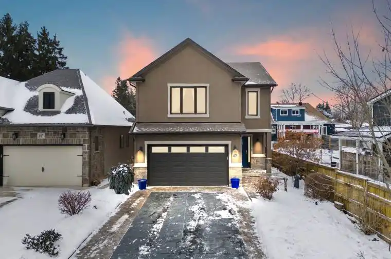 Tucked at the end of a quiet cul-de-sac, this lovely, custom built raised bungalow with lofted bedroom level is ready for a new family to enjoy! Constructed in 2014, in one of Welland’s most desirable neighbourhoods, it offers a modern look with its stone and acrylic stucco exterior along with a premium, stamped concrete double wide driveway that leads to an extended double car garage perfect for car enthusiasts or extra storage. Step inside to a spacious foyer where a few steps will take you up to the open concept main floor where natural light highlights the scratch resistant quality laminate flooring. The spacious kitchen features granite counters, high-end appliances, a centre island and plenty of cabinetry. It overlooks the dining and living areas warmed up for cozy winter nights with its gas fireplace. The well-designed layout offers 4 spacious bedrooms and 3 full bathrooms. The upper level provides privacy with two large bedrooms, including a primary suite with a 3-piece ensuite, plus an additional 4-piece main bath. The lower level adds versatility with the two additional bedrooms, a second 4-piece bath, and a large recreation room with another gas fireplace. A functional laundry room includes a separate walk-up entrance to the garage, offering excellent in-law suite potential. For the hobbyist or tech-forward buyer, the home features a 200-amp electrical service and a 240V plug in the garage for heavy equipment or a future EV charging port. Outdoor living shines with a multi-tier deck with waterfall feature, enclosed pergola with gas lines, and a lower pergola wired for an outdoor kitchen. Storage is exceptional, with a 10×14 dry space under the deck, a 4×9 shed, and a separate BBQ shed. Close and convenient to Seaway Mall, Maple Park, and top schools, this home blends luxury, function, and location. Excellent value!