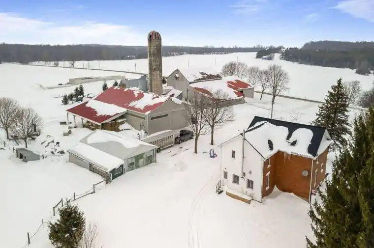 Welcome to this turnkey ongoing dairy farm just west of Harriston with 38.18 kg saleable quota and an excellent holstein herd all set on 153 acres with 70 acre workable of Harriston Loam soil. This tie stall facility offers an abundance of feed storage in the new 24X 100 X 10 concrete pit silo, a 16 X 65 ft. tower silo, 90 tonne grain bin and feed bins, mixed in the Penta TMR mixer delivering to the VIC 45 feed cart (2023). 5 Surge milkers on a pipeline draw the milk from the 38 stall barn to the 750 gallon milk cooler. The stable cleaner is only 4 years old with a 45 X 65 covered manure storage addition. The certified cows, young stock, feed and bedding are included with the purchase. Outbuildings include a 48 X 96 X 16 drive shed with 24 X 60 lean-to and a 32 X 48 barn. The 4 bedroom, 2 bath, 2 storey red brick house with a large family room has a newer furnace and a steel roof to offer lots of space for an expanding family. Lots of opportunities are waiting here.