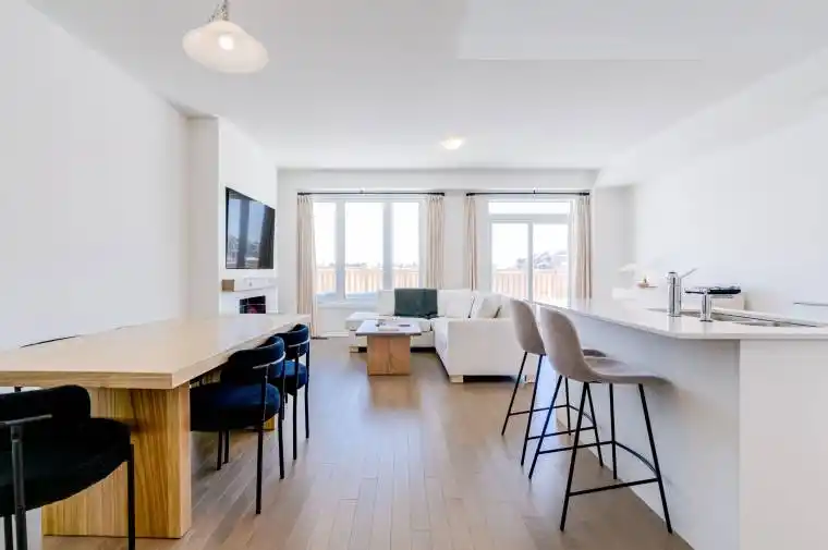 MOVE-IN READY! Welcome to this stunning 3-bedroom, 2.5-bathroom FREEHOLD townhome offering nearly 1,700 sqft of thoughtfully designed above-grade living space in a quiet, family-friendly neighbourhood. Built in 2024 by Great Gulf, this exceptional home features over $20,000 in upgrade value and still remains protected under the 7-year Tarion Warranty. From the moment you step inside, you’ll appreciate the quality craftsmanship and modern finishes throughout. Rich hardwood flooring flows seamlessly across the entire home, complemented by custom window coverings and soaring 9-foot ceilings on the main level that enhance the sense of space. Large windows flood every room with natural light, creating a bright and welcoming atmosphere. At the heart of the home, the upgraded kitchen showcases quartz countertops, ample white cabinetry, backsplash, stainless steel Frigidaire appliances, and under-cabinet trim with under lighting. The spacious Great Room features a walkout that extends your living space outdoors – perfect for hosting gatherings. Upstairs, you’ll find the convenience of second-floor laundry and three generously sized bedrooms. The primary bedroom is a true retreat, complete with his-and-hers closets and a luxurious 4-piece ensuite featuring a double vanity and glass-enclosed shower. An elegant wooden staircase with sleek black pickets beautifully connects both levels, adding a touch of sophistication. The basement offers an oversized window that bring in abundant natural light, along with rough-in outlets – providing excellent potential for future finished living space. Located just minutes from HWY 400, the South Barrie GO Station, schools, shopping, dining, scenic walking and cycling trails, golf courses, and Friday Harbour Resort. Whether you’re a first-time buyer, growing family, or savvy investor, this is an opportunity you won’t want to miss. Welcome home!