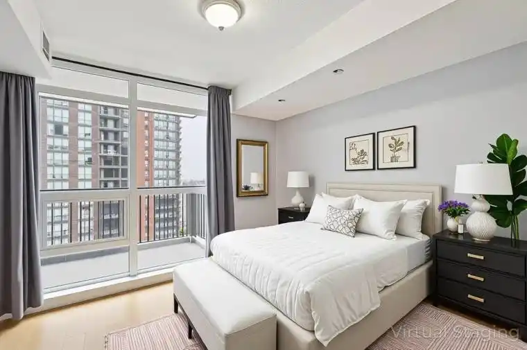 The Treviso at 800 Lawrence West offers a refined approach to North York living, where comfort, function, and flow come together. Rising 22 storeys, the building captures sweeping city views and delivers a strong presence in the neighbourhood. Life at 800 Lawrence is defined by ease, with walkable access to an impressive mix of local businesses and restaurants, and a drugstore conveniently located just across the street. Inside this thoughtfully designed one-bedroom plus den, one-bathroom suite, the layout is both efficient and intuitive. Superior sound insulation creates a remarkably quiet living environment, while the den is positioned across the suite from the bedroom and living area, making it ideal for working professionals or those working from home. Minimal hallway space, generous closet capacity, and an additional storage locker make the unit feel larger than its footprint and stay effortlessly organized. Floor-to-ceiling sliding glass doors frame beautiful sunset views from the west-facing exposure. Step outside to the oversized balcony, which offers an inviting outdoor space perfect for summer entertaining. Residents also enjoy access to an array of amenities, including an exercise room, recreation room, pool, and 24-hour security. Underground parking keeps your vehicle secure and protected year-round. With its intentional design, enviable location, and lifestyle-forward amenities, this suite at 800 Lawrence West offers a complete package for those seeking a home that balances comfort, style, and convenience.