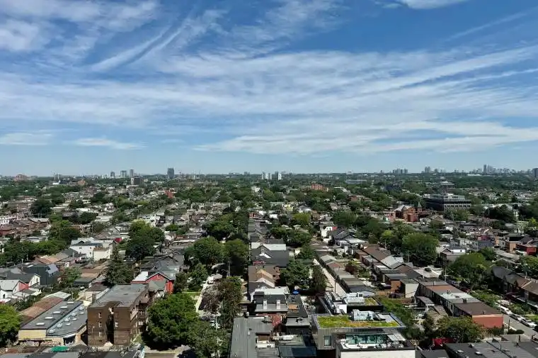 This spacious 2-bedroom. 2-bathroom condo boasts a spectacular northeast corner view. The large windows provide a clear, unobstructed view of the skyline, with the iconic CN Tower visible right from the comfort of your bedroom. The open concept layout ensures ample natural light, enhancing the sense of space and tranquility. Enjoy modern amenities and a prime location, making this the perfect urban retreat. Located in the heart of Queen West, you’ll have easy access to all the best shopping, dining, & entertainment options that the area has to offer. Steps to TTC, easy access to the Gardiner. The building itself boasts incredible amenities such as fitness center, party room, rooftop terrace w/BBQ. Parking is available for rent at an additional $150/month.