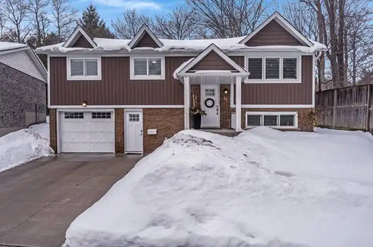 Welcome to 31 Dayman Court, a fully renovated raised bungalow tucked away on a quiet court with mature forest views, ideally located on the border of Kitchener and Waterloo, and just around the corner from Westmount Golf & Country Club. This move-in-ready 3-bedroom, 2-full-bathroom home offers open-concept main floor living and has been thoughtfully updated from exterior to interior with high-end finishes throughout. Features include crown moulding, flawless laminate flooring, quartz countertops, and quality fixtures. The bright lower level offers large windows, a spacious rec room, laundry, 3-piece bathroom, and a convenient separate entrance beside the oversized garage leading into a generous mudroom with direct garage access, providing excellent potential for an in-law setup. Upstairs showcases a tastefully renovated kitchen and living spaces, three generous bedrooms with large windows, and a 4-piece bathroom. Major updates completed in 2017 include roof, furnace, A/C, windows, doors, trim, and 100-amp electrical service on breakers. Additional improvements include blown-in cellulose attic insulation (2018), front steps (2024), and a freshly sanded and stained deck (2025). Extra long single-car garage and parking for two vehicles. Step outside to a fully fenced backyard featuring mature gardens, perfectly poised for beautiful spring blooms, an ideal space to relax, entertain, or enjoy your own private outdoor retreat. Enjoy a peaceful, family-friendly setting with quick access to shopping, parks, trails, transit, universities, and major commuter routes, offering the perfect blend of privacy, nature, and convenience.