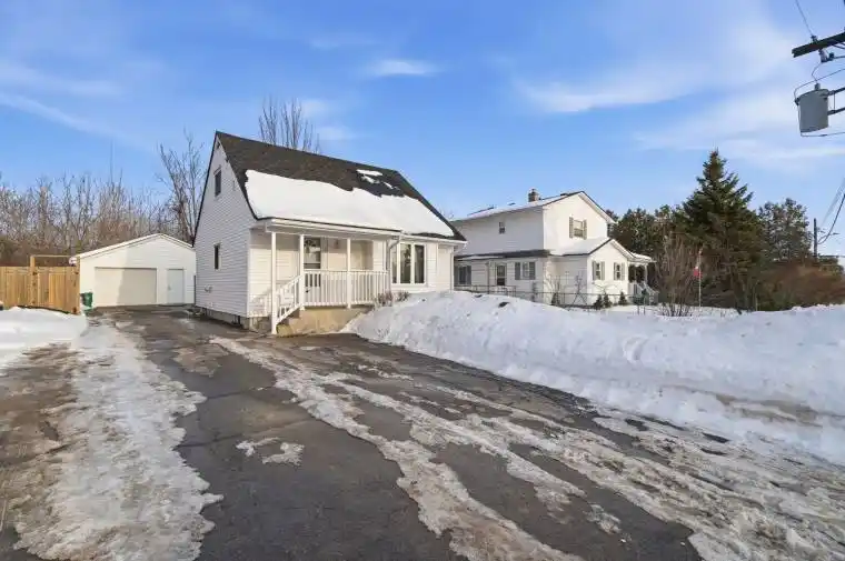 Adorable 1 1/2 storey home in Belleville’s desirable east end, just minutes to the hospital, waterfront trails, groceries, LCBO and more! This move-in ready home has been beautifully refurbished from top to bottom and features 2 bedrooms, 2 bathrooms, fresh paint, some new flooring, and an abundance of windows that fill the space with natural light. The dining room offers a walkout to a large deck overlooking peaceful open space with no rear neighbours. Major updates include a new heat pump (2026), new kitchen countertop (2026), and roof (2024). The finished basement provides a spacious rec room plus two additional rooms ideal for a den and home office, with potential for future bedroom conversion. Partially fenced yard and a detached double car garage complete this charming property. A wonderful home in a fantastic location!