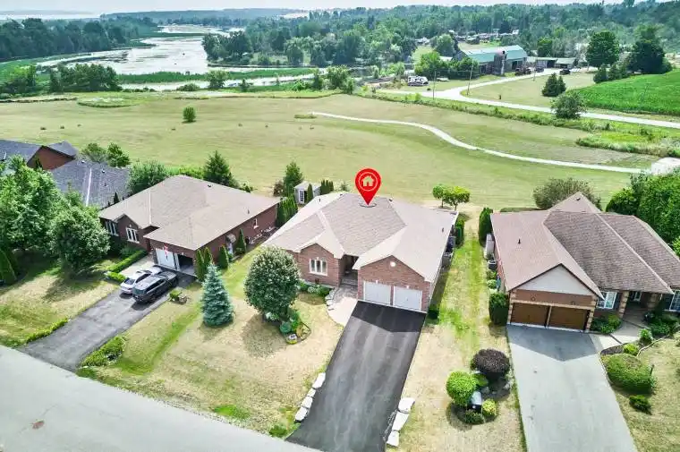 Graceful Living, Your Time has Arrived. Step inside and Welcome to one of Kings Bay’s Finest Homes and only 15 Mins to Port Perry. This 1986 Sq Ft Custom, 1 Owner 3 Bedroom All Brick Bungalow features Modern 9 Ft Flat Ceilings with Led Lighting and Spotless Hardwood Flooring Throughout! A Beautiful Primary Retreat complete with a Lavish 5 Pce Ensuite with Double Glass Shower and Soaker Tub plus a Walk-Thru Dressing Room for Quiet Comfort. 2 further Spacious Bedrooms offer Double Closets and Bright Picture Windows. The Classic Open Plan Boasts Views of the water from The Large Dining and Great Room Windows and Kitchen. Sliding Doors access the Western Exposure Stone Patio with Pergola and Retractable Awning for Sun Shade and Bbq’s … Its The Sunset Spot ! A Custom Backsplash and Under Cabinet Lighting enhance the Quartz Countertops and Breakfast Island in the Ample Kitchen. A Pantry and Custom Cabinetry plus a full compliment of Quality Stainless Appliances and Fume Hood will Please Any Chef in the Family … Cook whilst You Entertain ! A Cozy Gas Fireplace in a Custom Hearth anchors this Space. The Convenient Laundry Room provides access to the Garage Directly, which is equipped w/Dual Liftmaster Openers for easy indoor parking. The Oak Staircase leads you to the Lower Level for Recreating and Relaxing in Style ! Features include more Hardwood Flooring over Dricore and More Led Lighting, Built-in Speakers, Another Napoleon Gas Fireplace w/Thermo-Remote and Look-out Windows, making this a Wonderful Warm and Bright Area of the Home .The Custom 3pce Bath with Glass walled Double shower is Sure to please after a Work-out in the Exercise Area. Nestled in between Lake Scugog and the Nonquon River, this enclave in Seagrave enjoys country living with urban amenities. Only 8 minutes north of the Town of Port Perry, and Port Perry Hospital and only 40 Mins from Whitby. Please Visit the Virtual Tour Don’t wait to Explore This Opportunity.