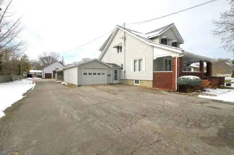 Zoned R2-3 Creating Endless Possibilities for Development and Potential to Severe ! This Charming 1 1/2 Storey Home Includes an attached garage as well as a 60×40 Heated Detached Shop to Legally Run your own business from the comfort of your home with an additional 30×20 Bay. The House is Perfect for the growing family with 5 Bedrooms and 2 Full Baths with a separate entrance creating the possibility for an in-law suite or downstairs Unit to rent. The Master Bedroom boasts a walk in Closet. The House has a Back-up Sump in case the Hydro goes out as well as a 220V sub panel in garage, municipal Water and Sewer while as a bonus The shop Includes a Sandpoint well to save on water. The shop also Features Air Compressor with Built in Quick connects, I Beam Trolly (to Hoist), LED Lighting, Data Cables, Drainage tiles, and updated Vinyl Windows. The possibilities are endless…