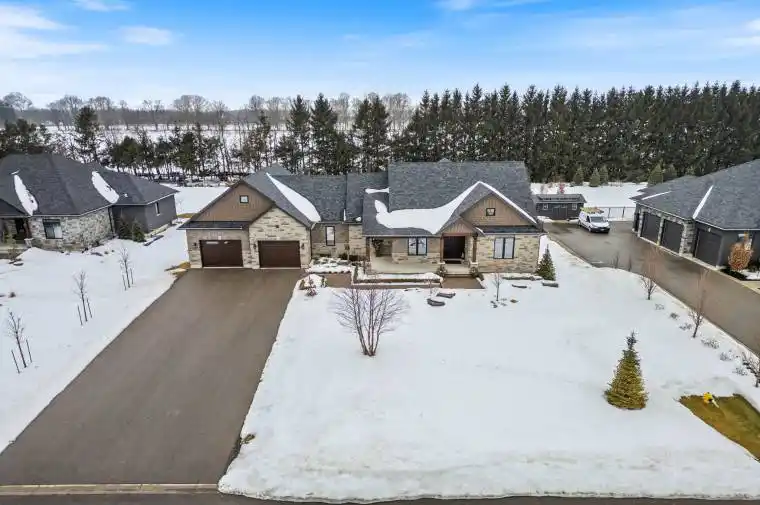 Absolute perfection inside and out, welcome to 23 August Crescent in Otterville! A quiet Crescent of Executive homes in a quaint town, hosts this stunning ranch with beautiful stone detail, indoor parking for up to 4 vehicles and a luxurious dream backyard. The lavish backyard is fully fenced with iron for expansive views with fields beyond, an in-ground heated salt-water pool with coordinating Timber cabana featuring a stunning wood burning fireplace, as well as a beautiful covered rear porch with timber accents this backyard is an entertainers dream. There is extensive hardscape, lush landscaping with accent lighting and mature trees creating a scenic view from every window. This quality built home has been impeccably cared for with approximately 3,500 sq.ft. of total finished living space, offering 4 bedrooms, 3.5 bathrooms and excellent space for entertaining, an custom kitchen with walk-in pantry, quartz countertops and a stunning gas fireplace. The basement features a second entrance, ideal for an in-law suite, it has a kitchenette/ bar, large open space suitable for games area and family room, an office space, plus the 2 lower level bedrooms and full bathroom. The property is .7 of an acre, the huge attached garage has a finished loft currently used as a recroom. The home features a security system, stand-by generator, it is on Municipal water but also has a drilled well for outdoor watering and sprinkler system. Make 23 August Crescent in Otterville your dream come true.