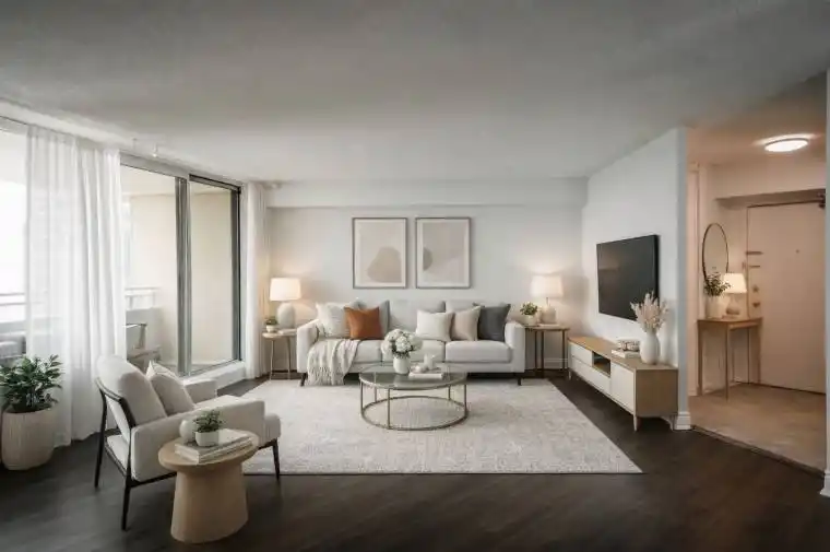 Bright and spacious open concept two bedroom unit offering generous living space and a great view from the balcony. The unit features in-suite laundry and a well designed, functional layout. Conveniently located near Highways 401 and 427, and within walking distance to shopping and schools. TTC and GO Transit bus services are close by, with quick access to Pearson Airport. The building offers excellent amenities including an indoor pool, sauna, gym, 24 hour gated security, and an on site convenience store. Parks, transit, and everyday amenities are all within close reach, with a daycare facility nearby for added convenience. Recently completed, the unit features a fully renovated bathroom with new tile, bathtub, toilet, and vanity. The kitchen has also been updated with new cabinetry and countertops, providing a fresh and functional space. A French Immersion school is located nearby. School boundaries, eligibility, and enrolment are determined by the school board and must be verified by tenants and cooperating agents. Some images have been virtually staged to illustrate the property’s potential. Furniture and décor shown in these images are for visual representation only and are not included in the lease.