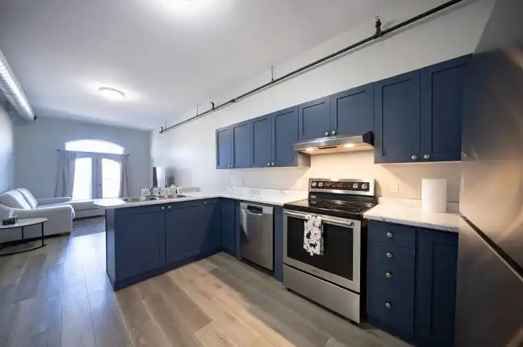 Welcome to 150 Colborne Street, Unit 407 – Downtown Brantford Living at Its Best! Step into style, comfort, and convenience with this fully renovated, loft-style 1-bedroom, 1-bathroom condo, ideally situated in the heart of downtown Brantford, directly overlooking vibrant Harmony Square. Whether you’re a first-time buyer, investor, or student, this stunning unit offers an unbeatable combination of modern living and prime location. Boasting high ceilings, a spacious private balcony, and sophisticated finishes throughout, this unit is designed to impress. The kitchen is a true showstopper, featuring rich navy cabinetry, ample storage and counter space, and stainless steel appliances – perfect for home chefs and entertainers alike. The open-concept layout seamlessly connects the kitchen, dining, and living areas, making entertaining both effortless and elegant. Step through French doors to your oversized balcony, large enough to accommodate outdoor dining or a cozy lounge setup – the perfect space to unwind while enjoying views of Harmony Square and all its seasonal events. The bright and airy bedroom is bathed in natural light thanks to a charming arched window and includes a generous closet. The updated 4-piece bathroom continues the modern aesthetic with stylish finishes and thoughtful design. Additional features include coin-operated laundry facilities conveniently located within the building, eliminating the need for off-site trips. The air conditioner was replaced in 2024. Location is everything – and this property delivers. Just steps from Wilfrid Laurier University’s Brantford campus, the Conestoga College campus, and the new YMCA/Laurier Recreation Complex, this condo is ideal for students or as a smart investment opportunity. With countless restaurants, cafes, shops, and year-round festivals right outside your door, you’ll be at the centre of it all. Amazing opportunity to own a piece of one of Brantford’s most dynamic and walkable neighbourhoods.