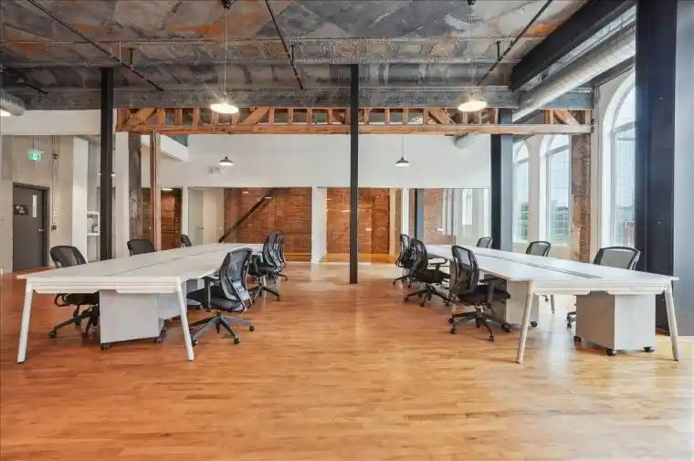 Pristine office space available at the prestigious King James Building! This one-of-a-kind suite offers 2,800 square feet with soaring 16′ hammered-tin ceilings, floor-to-ceiling arched windows, glass-enclosed boardroom, kitchen, in-suite washrooms (including one fully-AODA compliant), storage closets, exposed ductwork, post-and-beam construction, multiple glass-enclosed, private offices, and access to the fifth floor common area terrace! Serviced by a fob-secured elevator that opens directly into the suite, this newly-available office suite is one of the most sought-after units in city. The building itself has been completely redeveloped by Core Urban; known for their brilliant combination of preserved heritage features and character with modern features and building systems. Located in the heart of downtown Hamilton, this suite is literal steps away from the major banks, City Hall, the court houses, McMaster University’s downtown campus, the James North Arts district, Jackson Square, the King William restaurant district, and so much more! Immediately available. Note: furniture shown in photography belongs to prior tenant and not available for use.